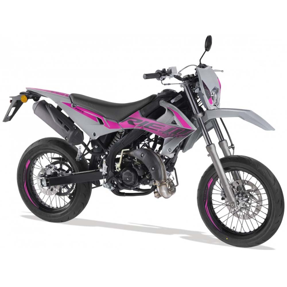 Met de nieuwe RIEJU MRT 50 SM begint stijl bij jou. Met een energiek, gedurfd en ultra-jeugdig supermotard-ontwerp is het onmogelijk om onopgemerkt te blijven. In de nieuwe kleurenreeks valt een opvallende Grey-tint op, vergezeld van een volledig vernieuwde en energieke decoratie met roze en oranje graphics. Het is een motor die jouw taal spreekt: visueel, krachtig en met karakter.